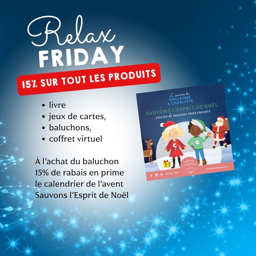 Promo Relax-Friday Jusqu'au 30 novembre 15 % de rabais